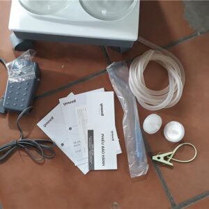 Thiết kế của máy tập trung vào tính thực tiễn và an toàn: Kích thước gọn gàng (36x32x48cm), trọng lượng 15,5kg, dễ lắp đặt và di chuyển. Hệ thống bơm pit-tông không dầu giúp vận hành sạch sẽ, ngăn vi khuẩn. Các bình thủy tinh trong suốt cho phép theo dõi dịch dễ dàng, kết hợp nắp chống tràn. Bảng điều khiển đơn giản với nút tay/chân và chiết áp, giúp điều chỉnh nhanh chóng mà không làm gián đoạn quy trình.